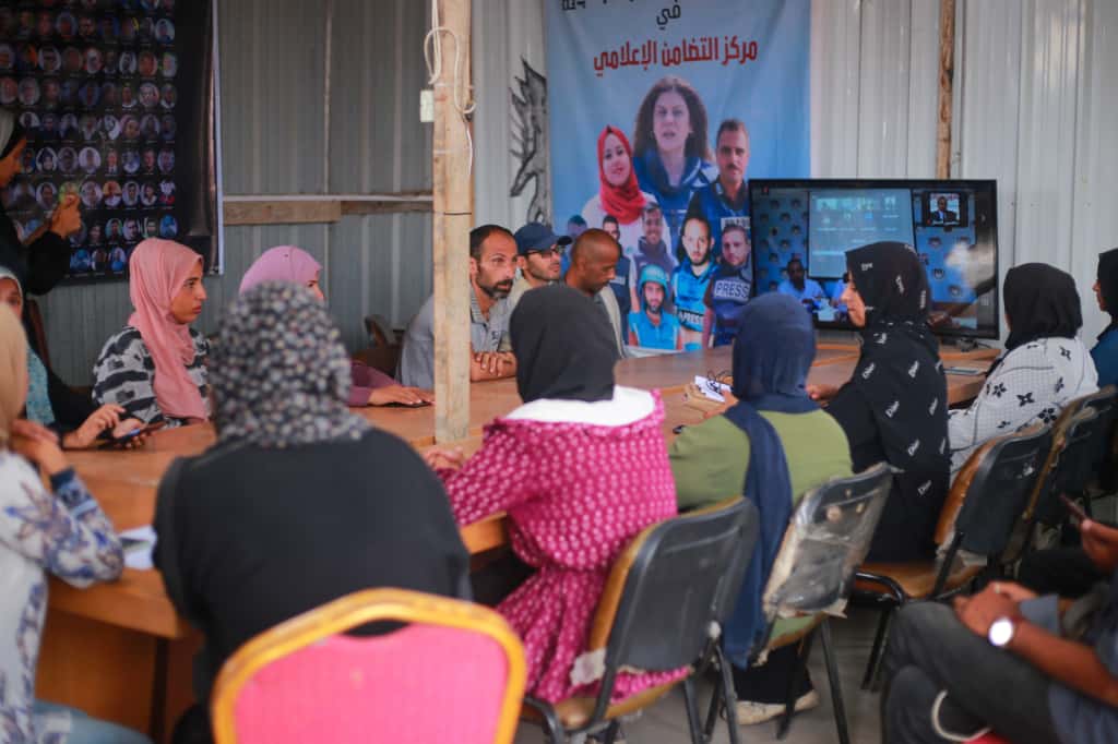 نظّمت نقابة الصحفيين الفلسطينيين ومركز تطوير الإعلام في جامعة بيرزيت، أمس الاثنين، ورشة عمل تفاعلية بعنوان "صحافيات وصحافيون تحت النار: التحدي والتعافي"، وذلك في مقر النقابة بمدينة رام الله ومركزي التضامن الإعلامي في خان يونس ودير البلح، وبمشاركة واسعة من الصحفيين والصحفيات في الضفة الغربية وقطاع غزة، وبدعم من الحكومة الكندية